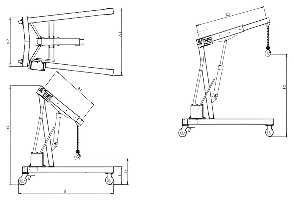 Light weight, easy to handle and operate, completely foldable and 3-level boom extension, if required can be transported from one location to another. The high-capacity hydraulic cylinder provides for faster action, available in caster and polymer wheels in Mobile Floor Crane.