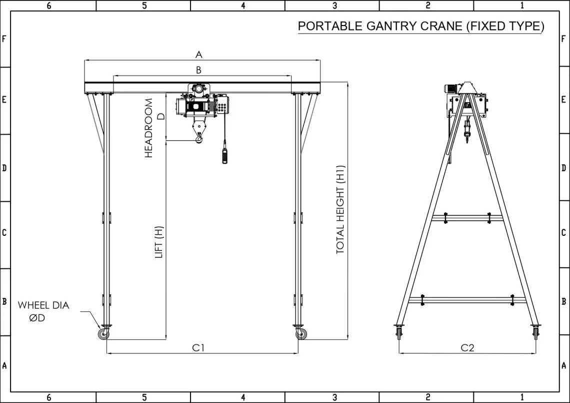 Portable Gantry Cranes are free-standing structures, with up to 5 Ton capacity are completely Foldable and Portable, light in weight, and can be easily transported from one place to another. We are renowned gantry crane manufacturers & suppliers in India also offering variable adjustable height as per job and site suitability. These are suitable for indoor and outdoor applications