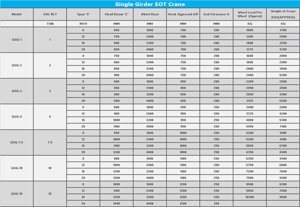 Single Girder EOT Crane are widely used in almost every kind of industry and various applications for Material Handling up to the lifting capacity of 15 Tons especially for light, medium & heavy-duty applications. All cranes are designed as per IS 3177 & 807 with the latest amendments.