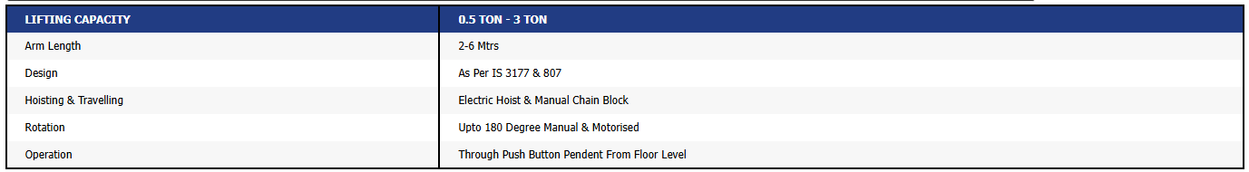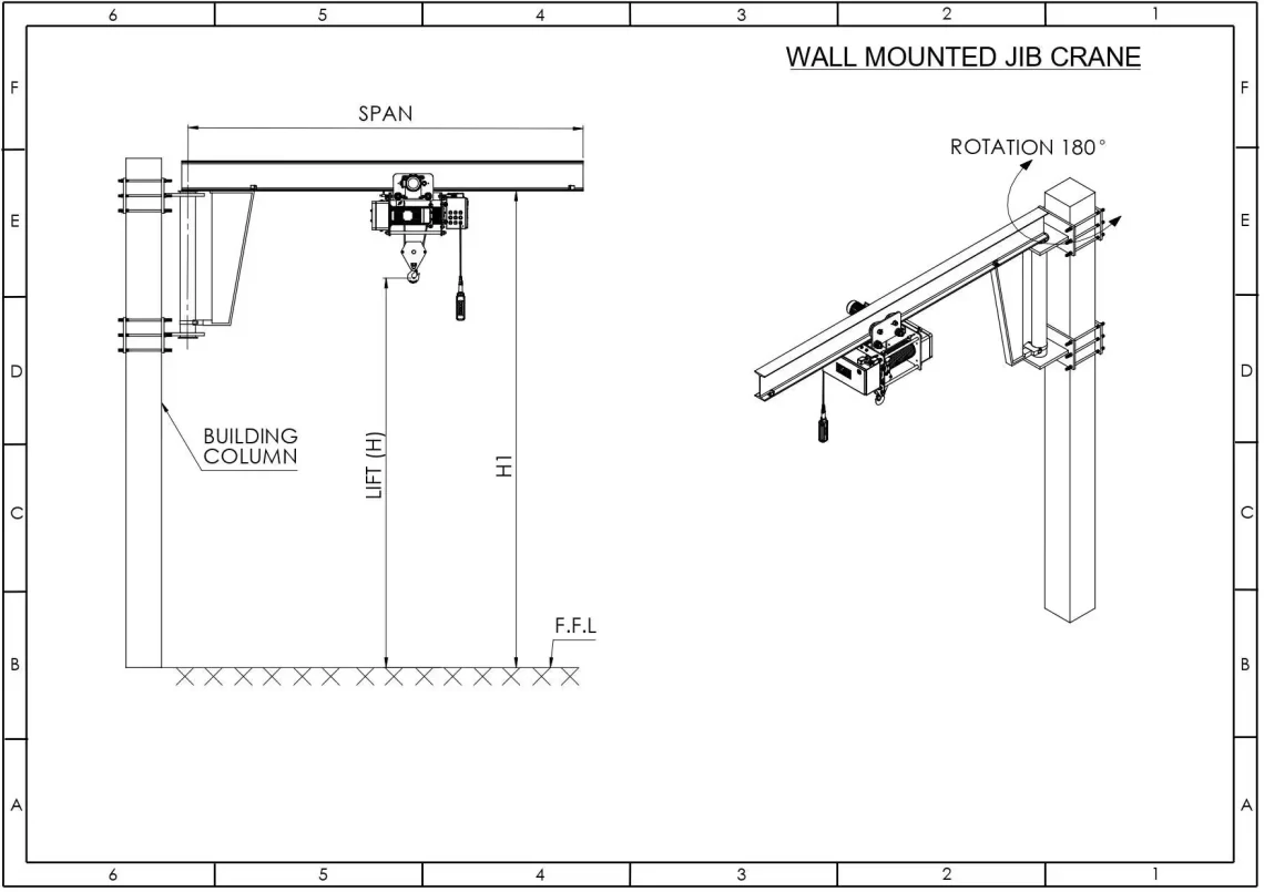 Column-mounted jib crane has been designed for freestanding installation on the building floor. This workstation crane provides a slewing range of up to 360-degree rotation with jib arm lengths of up to 6 m and Safe Working.